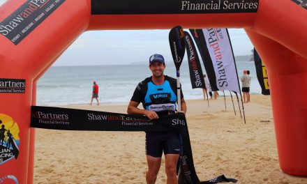 I had a great battle with Sean Rice but managed to sneak ahead. At the Centaur marker, with six kilometres to go, I held a slight lead over Sean and Nick Notten. As we turned, the wind was right behind us and everything linked up. I thought to myself, “All I need to do here is hold 3:15 pace and the title is mine.”