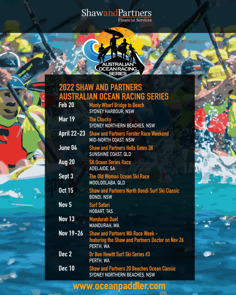 The Gold Coast Classic, Queensland’s biggest surfski race, is not included in this year’s series. But the state has received an additional race in The Old Woman Ocean Ski Race to be held on the Sunshine Coast in September.
