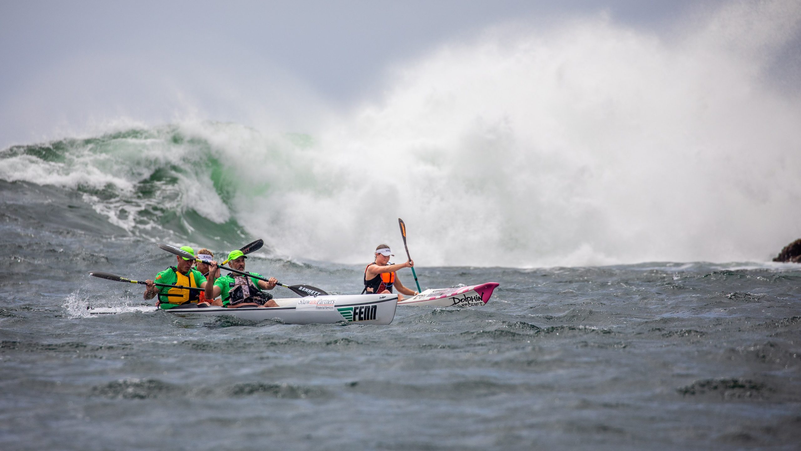 They clocked faster splits on their course, but also paddled an extra 700 metres. Incredibly after 20 kilometres, the two lines rejoined as one at Barrenjoey Head right on top of each other for one final fight upwind to the finish.