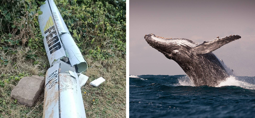 A whale breaching out of the ocean and landing on top of a surfski paddler – who somehow escaped unharmed.