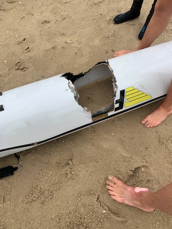 GALLERY: Nat Drummond after his horror encounter, and the damage inflicted on his FENN surfski.