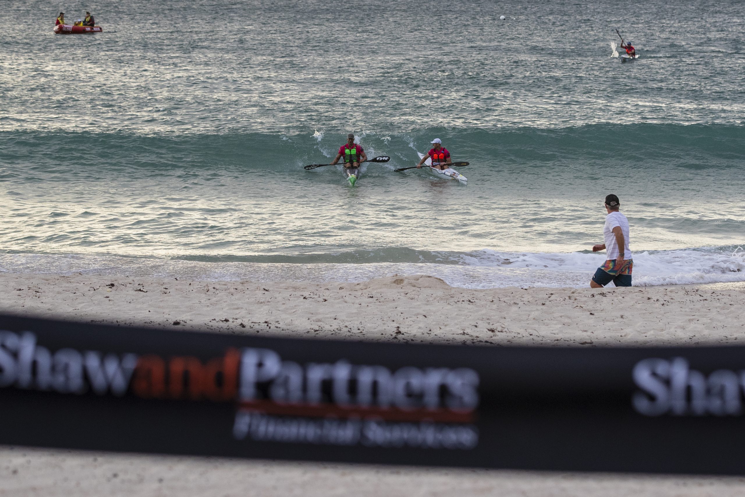 Competitors were told in the pre-race briefing they needed to drag their skis up the beach, beyond the first row of sponsor flags.