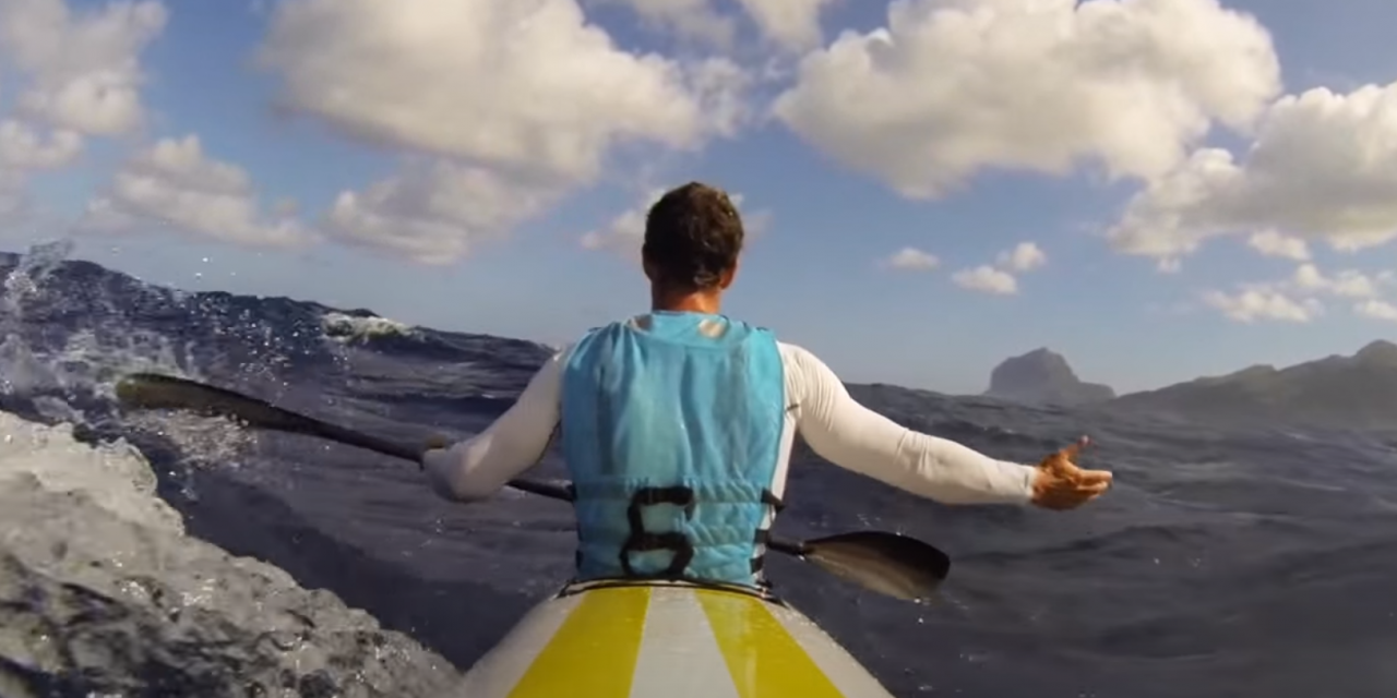 Sean Rice warming up for the 2014 Mauritius Classic with a pumping downwind run.